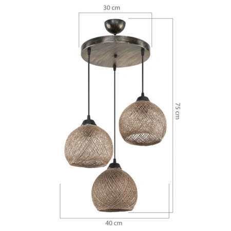 Φωτιστικό οροφής τρίφωτο PWL-1121 Ε27 καφέ Φ40×75εκ
