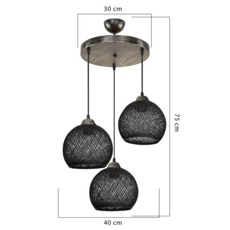 Φωτιστικό οροφής τρίφωτο PWL-1121 Ε27 μαύρο-bronze Φ40×80εκ