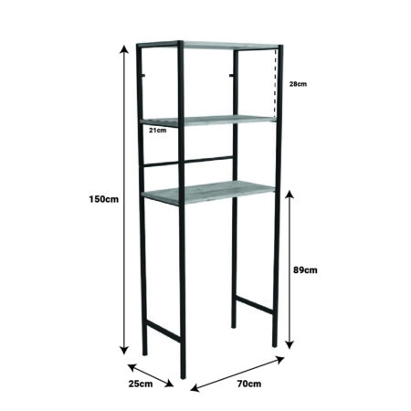 Έπιπλο πλυντηρίου Zermin μελαμίνης-μεταλλικό φυσικό-μαύρο 70x25x150εκ