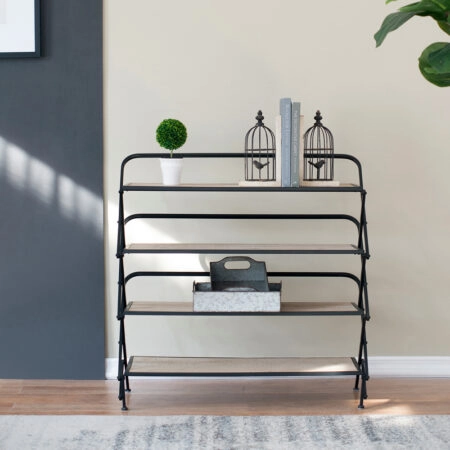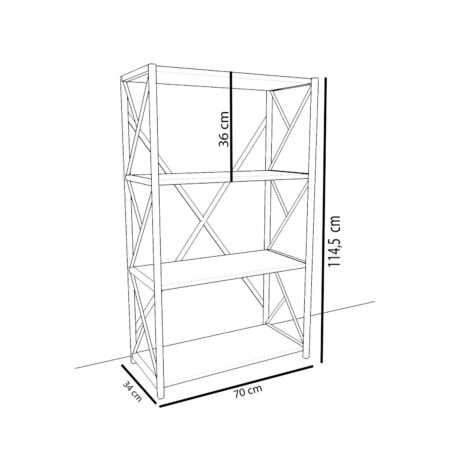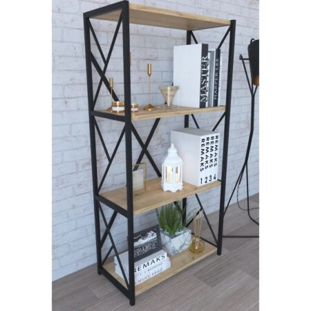 Βιβλιοθήκη IKE Δρυς/Μαύρο Μοριοσανίδα/Μέταλλο 70x34x114.5cm