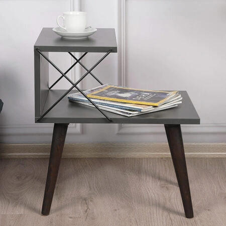 Βοηθητικό τραπέζι-κομοδίνο Gather ανθρακί-καρυδί 50x40x55εκ
