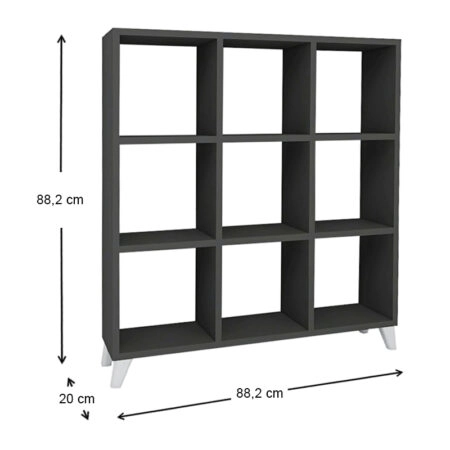 Βιβλιοθήκη μελαμίνης Saul Megapap χρώμα ανθρακί 88,2x20x88,2εκ. Η μοντέρνα βιβλιοθήκη Saul με τον ιδιαίτερο σχεδιασμό της σε στυλ κύβου, προσθέτει κομψότητα στο σπίτι και το γραφείο σας…