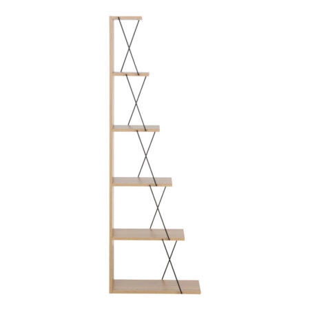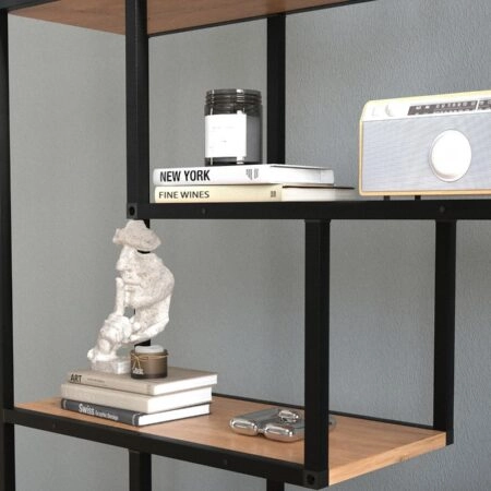 Βιβλιοθήκη Musha μέταλλο μαύρο με oak απόχρωση 120x27x185εκ