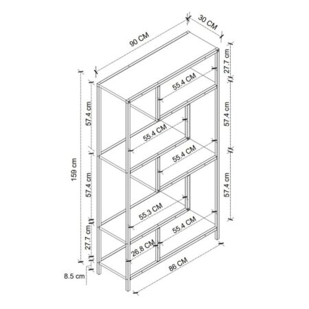 Βιβλιοθήκη Paleo λευκό μελανίνη 150.8x28x150.8εκ