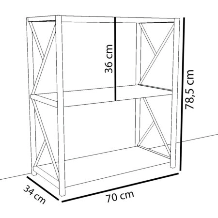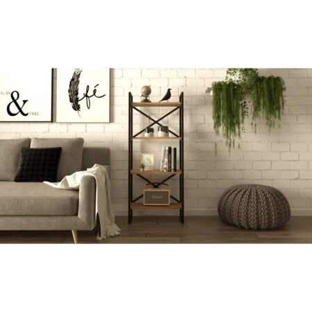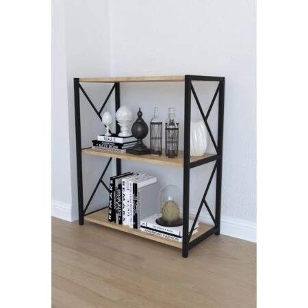 Βιβλιοθήκη JAWARA Δρυς/Μαύρο Μοριοσανίδα/Μέταλλο 70x34x78.5cm