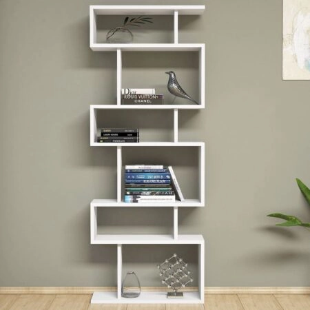 Βιβλιοθήκη Bookel μελαμίνης σε λευκή απόχρωση 59.5×27.5×89εκ