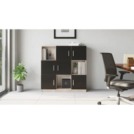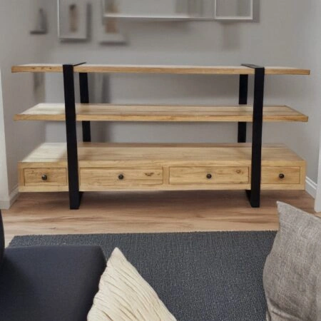Επιδαπέδια ραφιέρα Nebranzo σε oak απόχρωση με μαύρο μέταλλο 106x35x80εκ