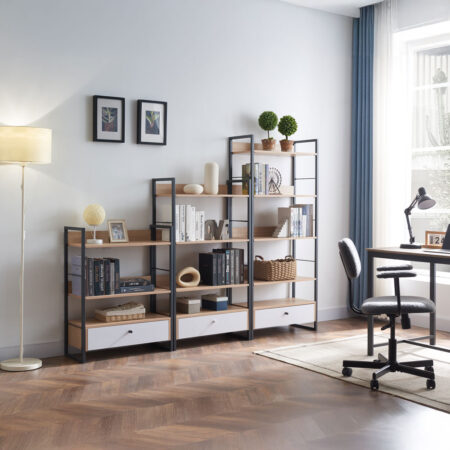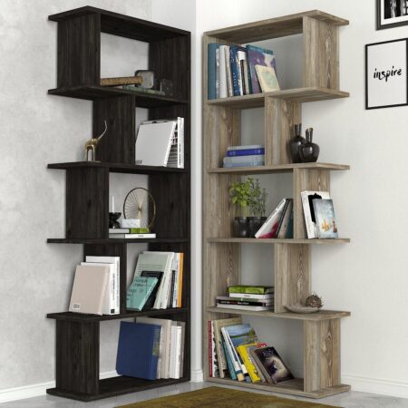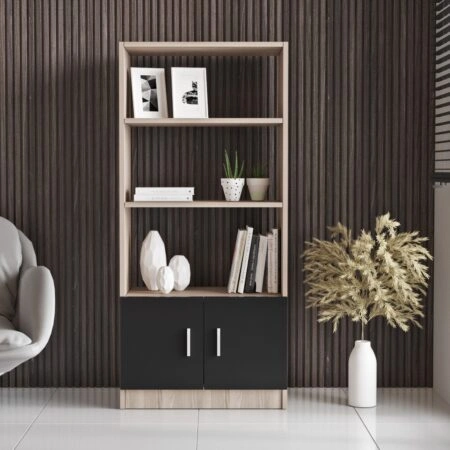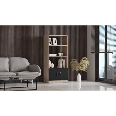 Βιβλιοθήκη EDGWARE Οξιά/Μαύρο Μοριοσανίδα 63.6×37.6x140cm