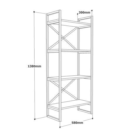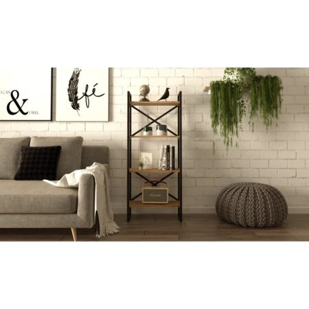 Βιβλιοθήκη Azuel φυσικό-μαύρο μέταλλο 29×23.5×144εκ