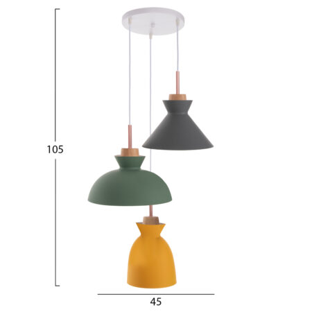 ΦΩΤΙΣΤΙΚΟ ΟΡΟΦΗΣ ΚΡΕΜΑΣΤΟ HM4141 3-ΦΩΤΟ ΜΕΤΑΛΛΟ-ΞΥΛΟ ΠΟΛΥΧΡΩΜΟ 105Υεκ.