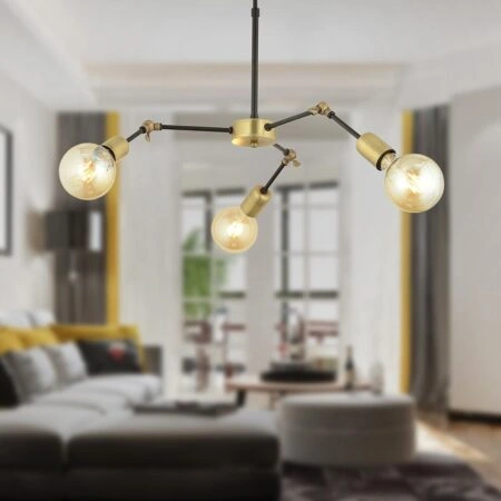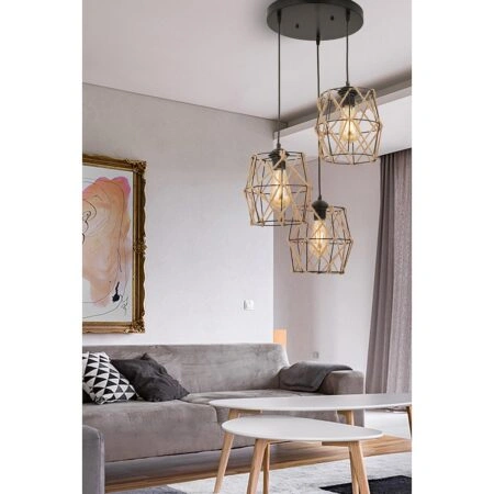 Κρεμαστό Φωτιστικό Τρίφωτο Χρυσό-Μαύρο Ε27 58x20x68cm