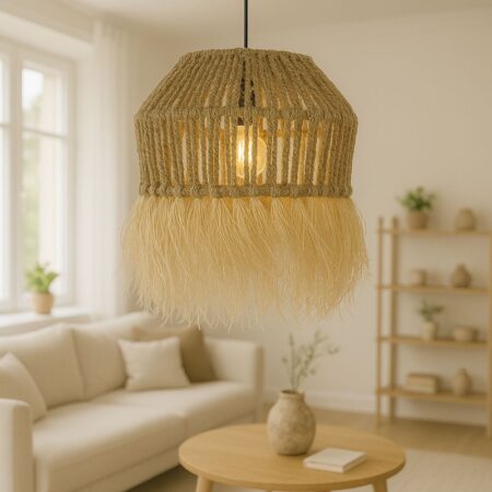 Φωτιστικό οροφής Borobe Inart sisal σε φυσικό χρώμα Φ60×35εκ