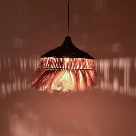 Φωτιστικό οροφής Arupade Inart abaca ξύλο σε φυσικό-μαύρο χρώμα Φ50×50εκ