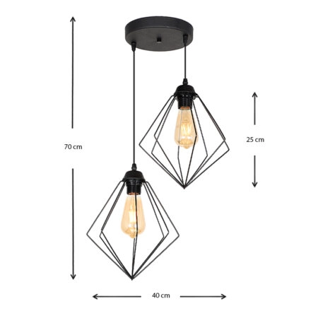 Φωτιστικό οροφής Nura E27 μεταλλικό δίφωτο χρώμα μαύρο 40x40x70εκ.