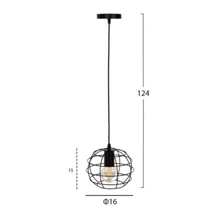 ΦΩΤΙΣΤΙΚΟ ΟΡΟΦΗΣ ΚΡΕΜΑΣΤΟ HM4063 ΜΑΥΡΟ ΜΕΤΑΛΛΙΚΟ ΚΑΠΕΛΟ 25x22x123Υεκ.