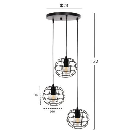 ΦΩΤΙΣΤΙΚΟ ΟΡΟΦΗΣ ΚΡΕΜΑΣΤΟ HM4041 3ΦΩΤΟ ΜΑΥΡΟ ΜΕΤΑΛΛΟ 25x22x123Yεκ.