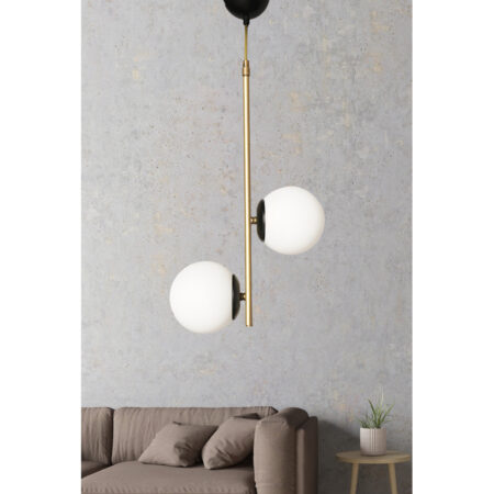 Φωτιστικό Κρεμαστό URUS Δίφωτο Μαύρο/Χρυσό Μέταλλο/Αλουμίνιο 82x120cm