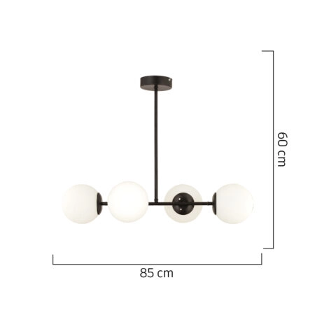 Φωτιστικό Κρεμαστό DELPHINUS Τετράφωτο Μαύρο/Λευκό Μέταλλο/Γυαλί 85x60cm