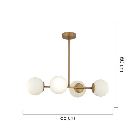 Φωτιστικό Κρεμαστό DELPHINUS Τετράφωτο Χρυσό/Λευκό Μέταλλο/Γυαλί 85x60cm