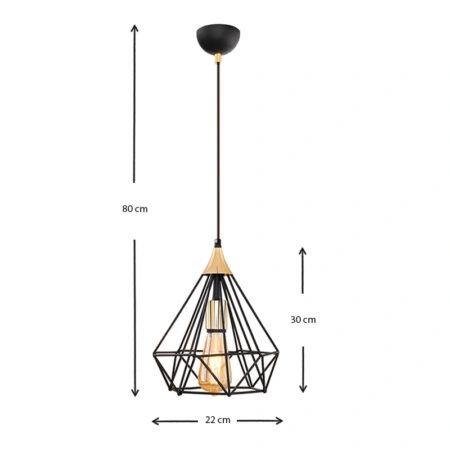 Φωτιστικό οροφής Hideki E27 μεταλλικό μονόφωτο χρώμα μαύρο 22x22x80εκ.