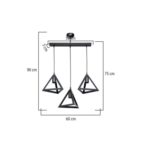 Φωτιστικό οροφής τρίφωτο Lich pp σε μαύρη απόχρωση 60x24x75εκ