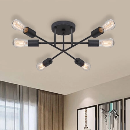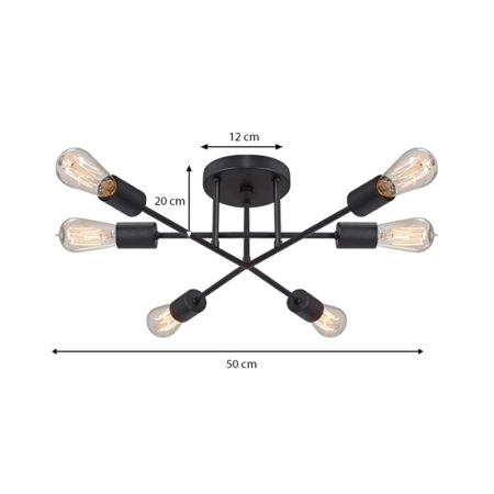 Φωτιστικό οροφής Helga E27 μεταλλικό εξάφωτο χρώμα μαύρο 50x12x20εκ.