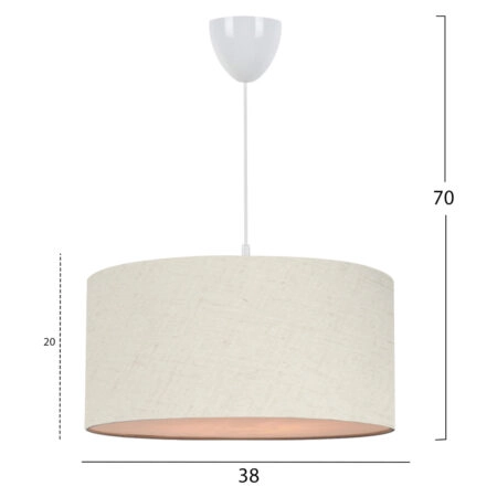 Φωτιστικό οροφής Fanny E27 υφασμάτινο μονόφωτο χρώμα λευκό – χρυσό Φ30×70εκ.