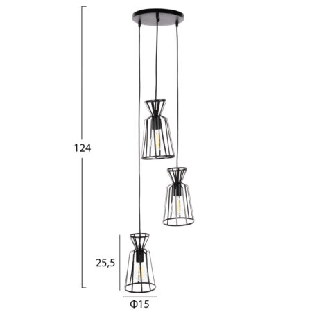 ΦΩΤΙΣΤΙΚΟ ΟΡΟΦΗΣ ΚΡΕΜΑΣΤΟ 3-ΦΩΤΟ HM4126 ΜΕΤΑΛΛΙΚΑ ΚΑΠΕΛΑΚΙΑ Φ23×124Υεκ.