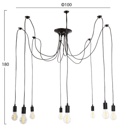 ΦΩΤΙΣΤΙΚΟ ΟΡΟΦΗΣ ΚΡΕΜΑΣΤΟ 8-ΦΩΤΟ HM4176 ΜΑΥΡΟ ΜΕΤΑΛΛΙΚΟ-ΜΑΥΡΑ ΚΑΛΩΔΙΑ Φ100×180Υ