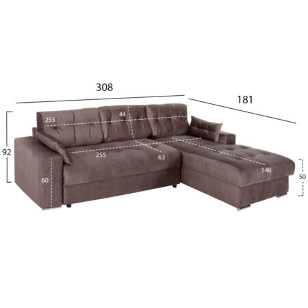 Γωνιακός καναπές-κρεβάτι αριστερή γωνία Belle μπεζ 236x164x88εκ