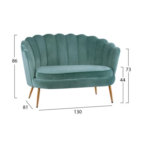 ΚΑΝΑΠΕΣ 2ΘΕΣΙΟΣ COQUILLE HM8627.07 ΑΠΟ ΦΥΣΤΙΚΙ ΒΕΛΟΥΔΟ ΜΕ ΧΡΥΣΑ ΠΟΔΙΑ 130x81x86Υ εκ.