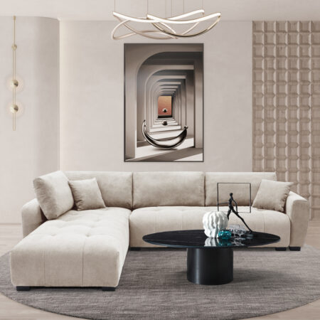 Γωνιακός καναπές Gianco αναστρέψιμος ύφασμα μπεζ 298x208x85εκ