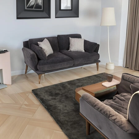 Artekko Ponpon Μαύρος Τριθέσιος Καναπές με Μπουκλέ Ύφασμα (250x100x70)cm
