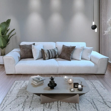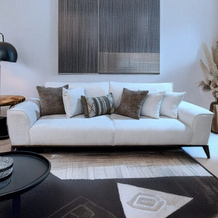 Artekko Pamukkale Τριθέσιος Λευκός Καναπές με Μπουκλέ Ύφασμα (240x100x80)cm