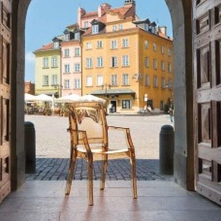Πολυθρόνα ARTHUR του οίκου Siesta σε χρώμα amber transparent με ιδιαίτερο σχεδιασμό πλάτης σε πολλούς χρωματισμούς.Κατασκευασμένη από διάφανο πολυκαρμπονικό της Makrolon.Κατάλληλη για εσωτερική και εξωτερική…