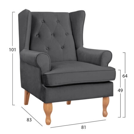 Πολυθρόνα Ανακλινόμενη ArteLibre TUREIS Γκρι Βελούδο 68x86x99cm