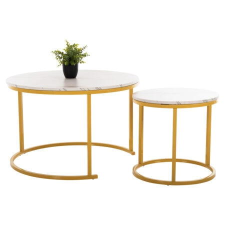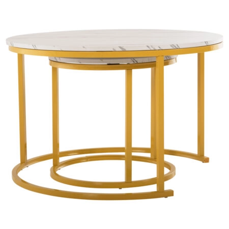 ΤΡΑΠΕΖΙ ΣΑΛΟΝΙΟΥ ΣΕΤ 2ΤΜΧ MDF ΕΦΕ ΛΕΥΚΟ ΜΑΡΜΑΡΟ ΜΕ ΧΡΥΣΑ ΠΟΔΙΑ Φ80 k Φ48εκ.HM8763.11