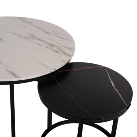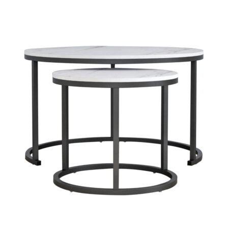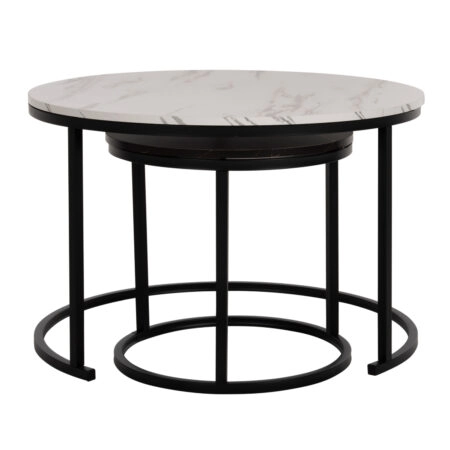 ΤΡΑΠΕΖΙ ΣΑΛΟΝΙΟΥ ΣΕΤ 2ΤΜΧ MDF ΕΦΕ ΛΕΥΚΟ ΜΑΡΜΑΡΟ ΜΕ ΜΑΥΡΑ ΠΟΔΙΑ Φ80κΦ48εκ.HM8763.12