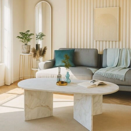 Τραπεζάκι σαλονιού Cortado Megapap χρώμα λευκό εφέ μαρμάρου 120x60x39,6εκ.