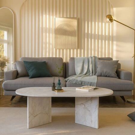 Τραπεζάκι σαλονιού Becaj Megapap χρώμα sandstone – travertine 120x60x41,4εκ.