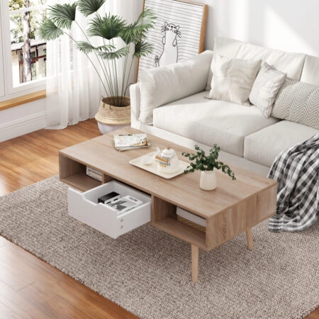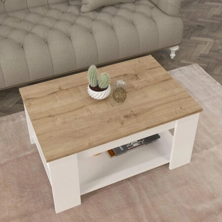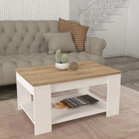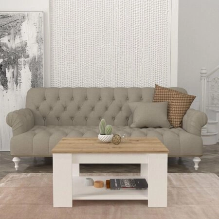 Τραπεζάκι Σαλονιού ALDEN Λευκό/Φυσικό Μοριοσανίδα/Μελαμίνη 90x60x42cm