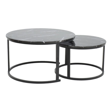 Τραπέζι σαλονιού Revelon σετ 2τεμ mdf σε απόχρωση μαύρο όψης μαρμάρου 80x80x45εκ