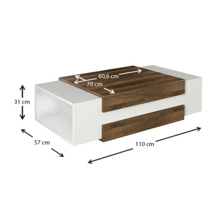 Τραπεζάκι σαλονιού Nora από μελαμίνη χρώμα λευκό – καρυδί 110×60,6×31εκ.