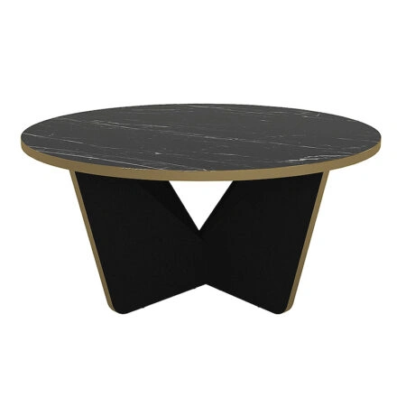 Τραπεζάκι σαλονιού Lagerta χρώμα μαύρο εφέ μαρμάρου Ø75×35εκ.