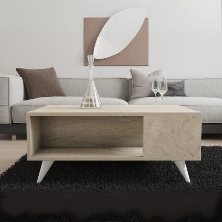 Τραπεζάκι σαλονιού Yuka Megapap χρώμα travertine 90x60x39,5εκ.