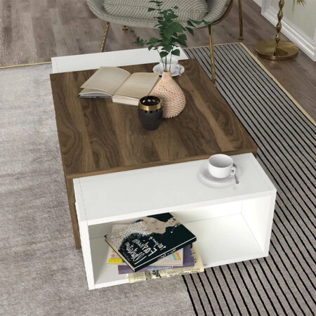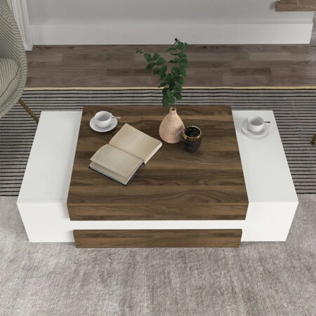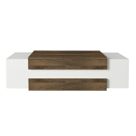 Τραπεζάκι σαλονιού Tab από μελαμίνη χρώμα λευκό – καρυδί 105x60x32εκ.