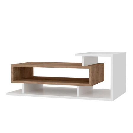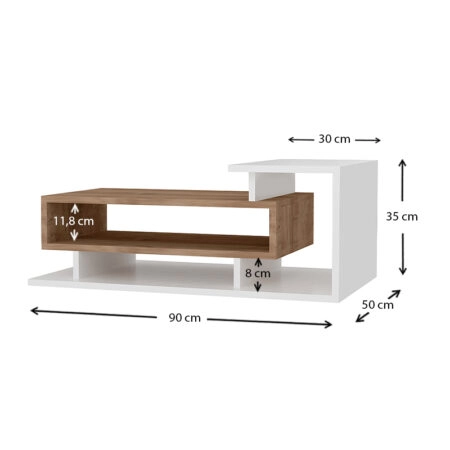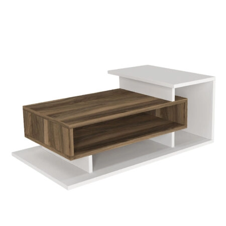 Τραπεζάκι σαλονιού Flynn από μελαμίνη χρώμα λευκό – καρυδί 90x50x35εκ.