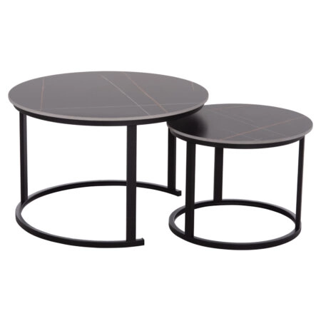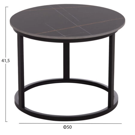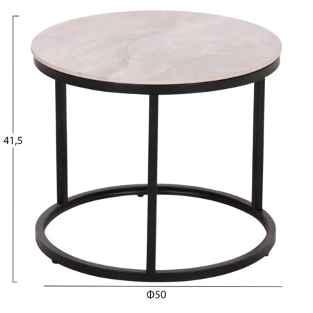 ΤΡΑΠΕΖΙA ΣΑΛΟΝΙΟΥ ΣΕΤ 2ΤΜΧ TALOS HM18140.01 ΓΚΡΙ ΚΕΡΑΜΙΚΟ TOP-ΜΕΤΑΛΛΙΚΑ ΠΟΔΙΑ Φ70×46Υεκ