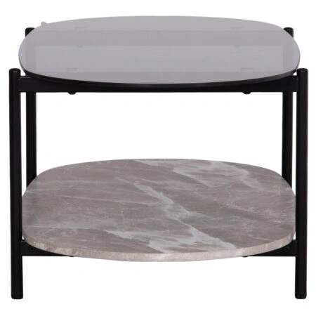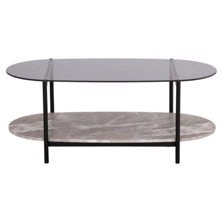 ΤΡΑΠΕΖΙ ΣΑΛΟΝΙΟΥ ΟΒΑΛ KITTY HM18040 ΓΥΑΛΙ ΦΙΜΕ TOP-GREY MARBLE ΜΕΛΑΜΙΝΗ 110x50x43Υεκ