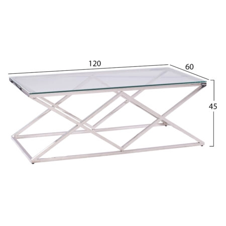 ΤΡΑΠΕΖΙ ΣΑΛΟΝΙΟΥ HOLLAND HM8624.01 ΜΕ ΓΥΑΛΙ ΚΑΙ ΒΑΣΗ ΧΡΩΜΙΟΥ 120X60Χ45 EK.